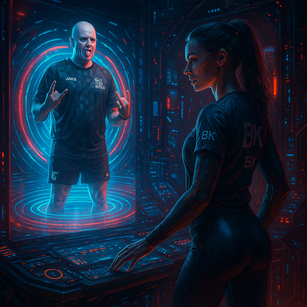 „Kalte Präzision trifft auf kybernetische Kontrolle. Das Kontrollzentrum zwischen Logik, Schutz und digitaler Seele.“