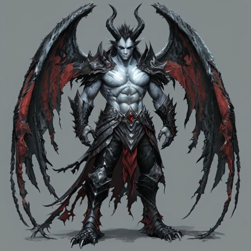 Dark Fantasy Character With Muscular Build And Menacing Wings