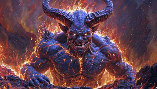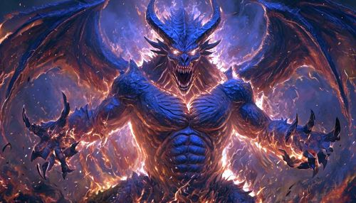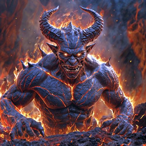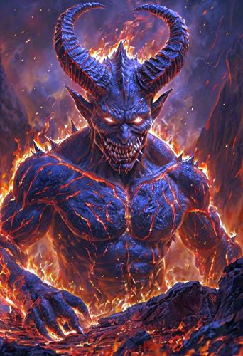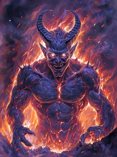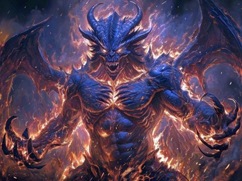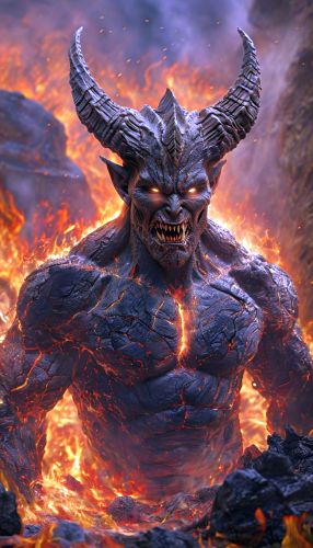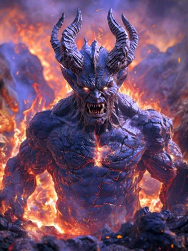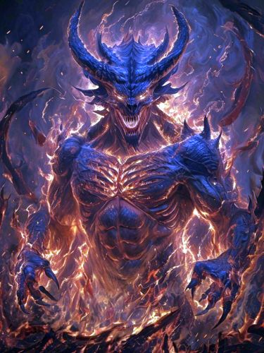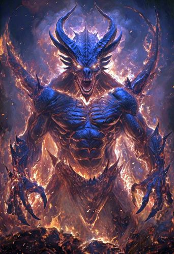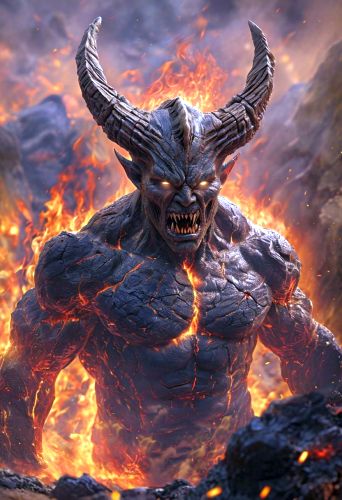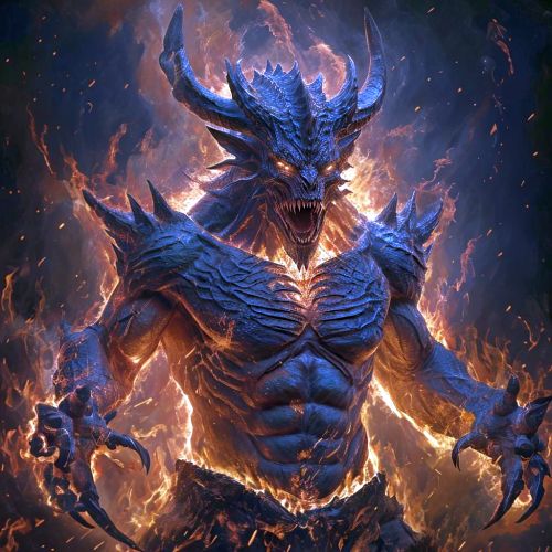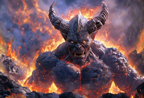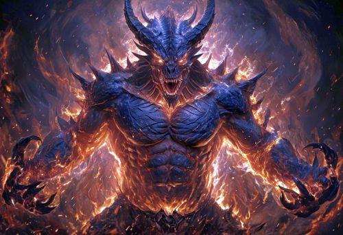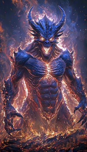 Demonic Creature Erupting From Flames In Dramatic Fantasy Scene