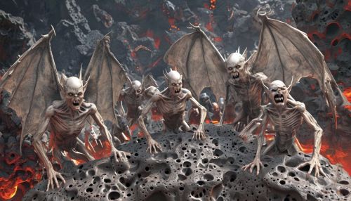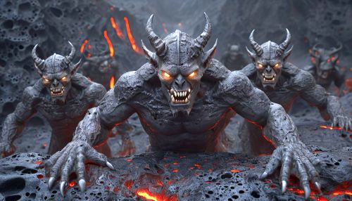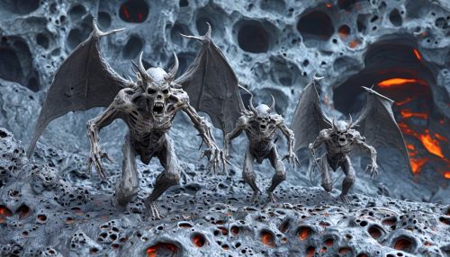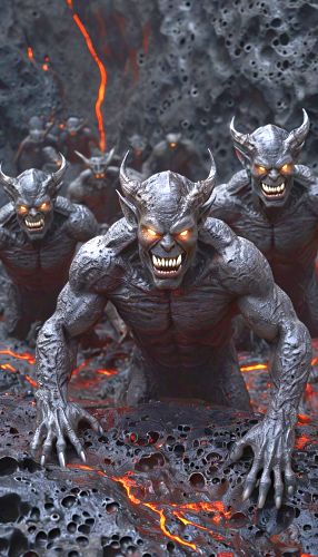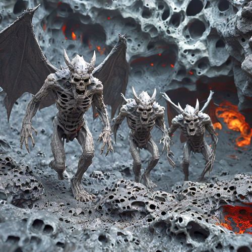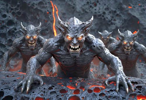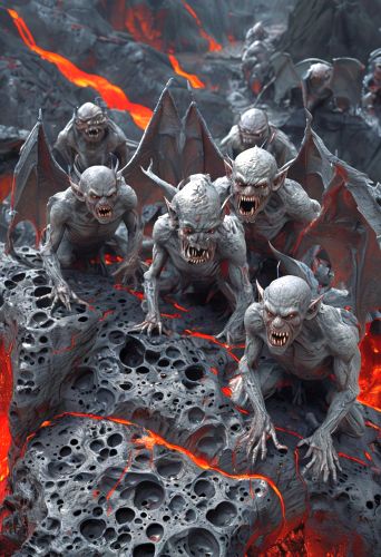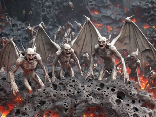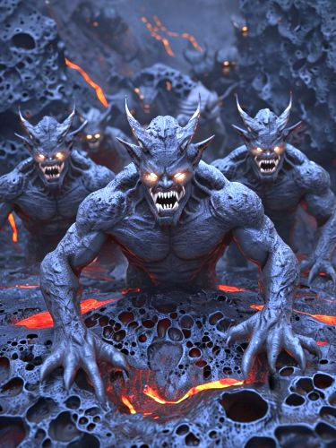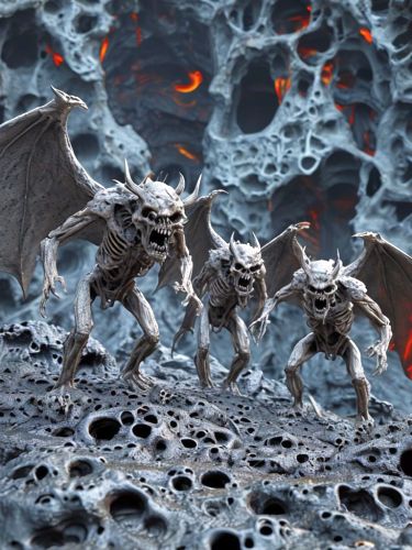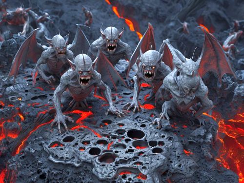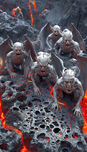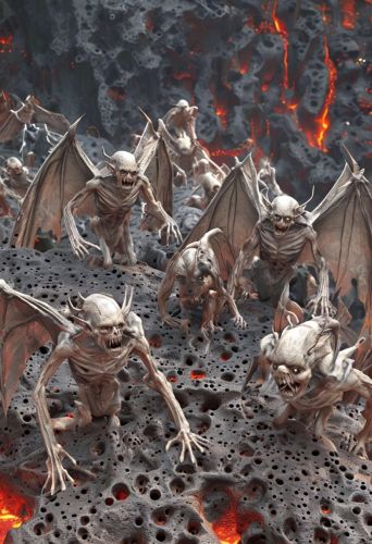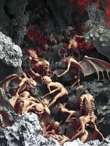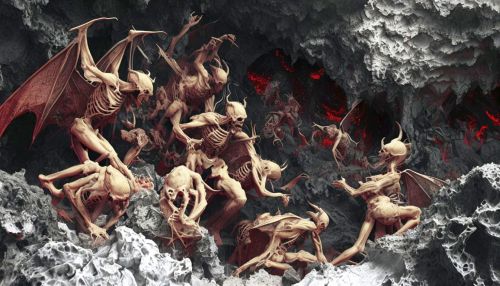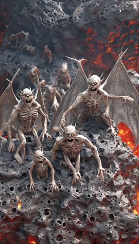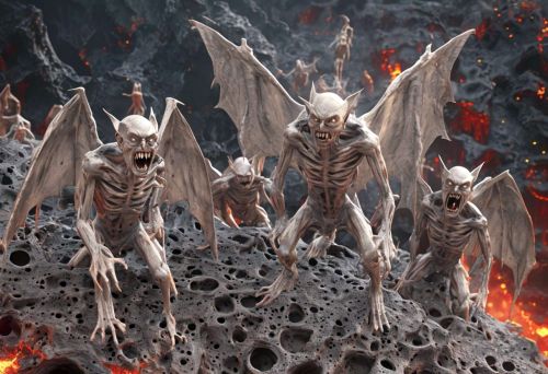 Demonic Creatures Engage in Torture Within Hellish Landscape