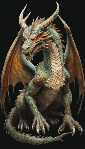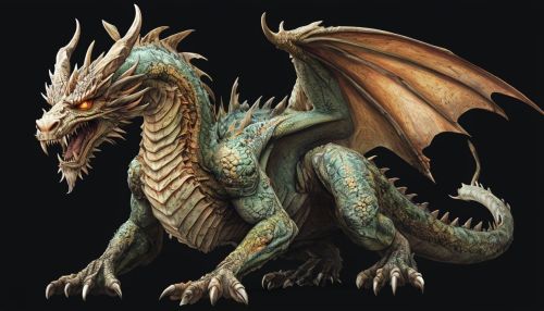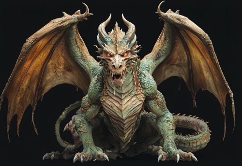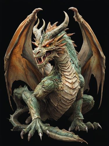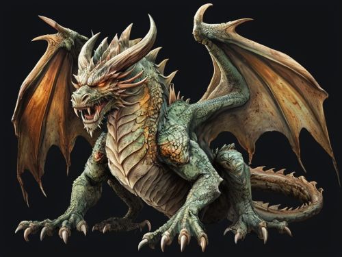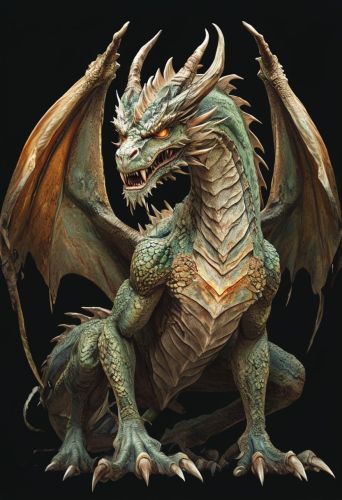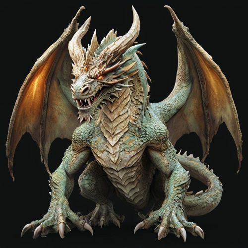Detailed Digital Illustration Of A Fantastical Crouching Dragon