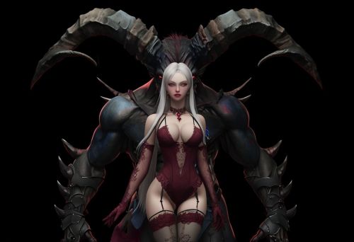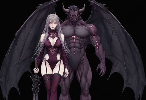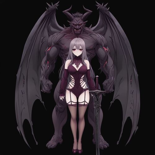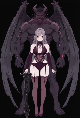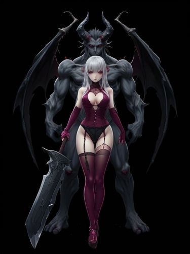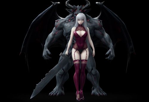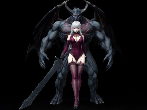 Dramatic Dark Fantasy Art With Heroine And Demonic Creature