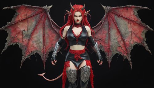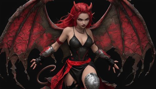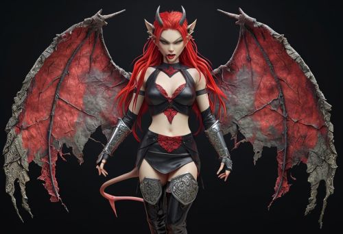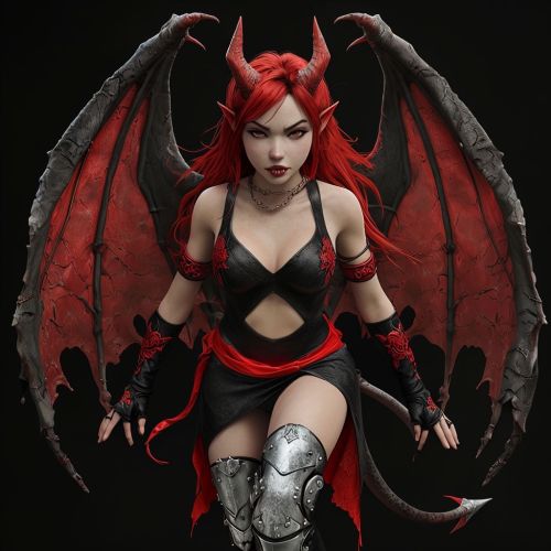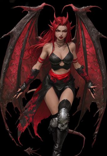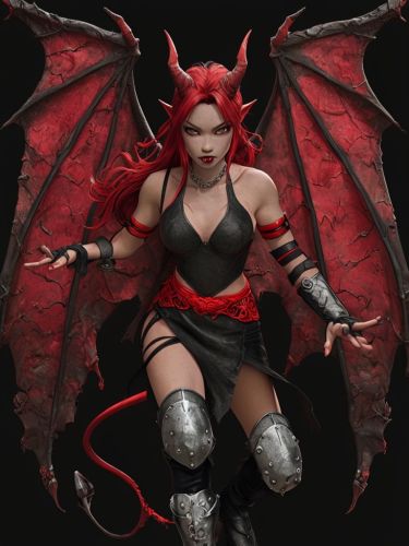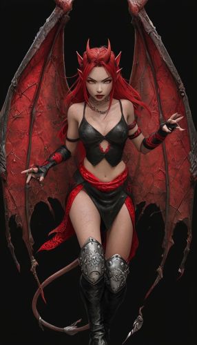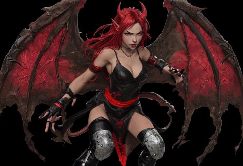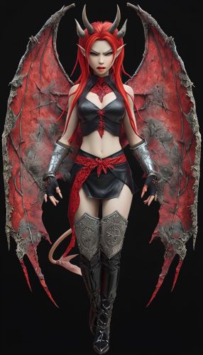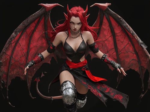 Fierce Female Demon Character with Fiery Red Hair