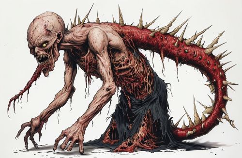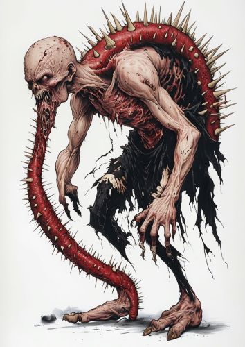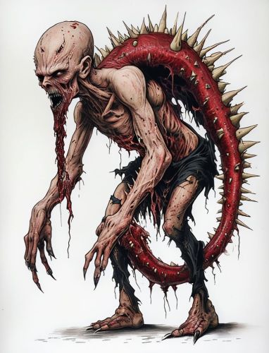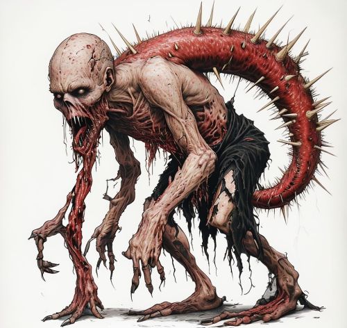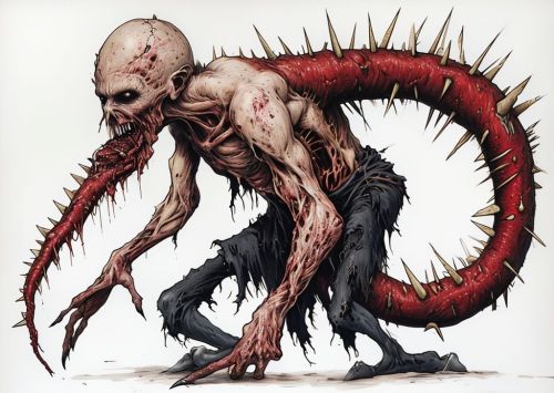 Grotesque Monstrous Creature With Elongated Serpentine Body