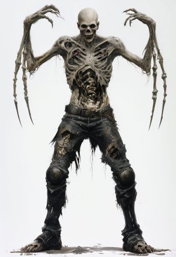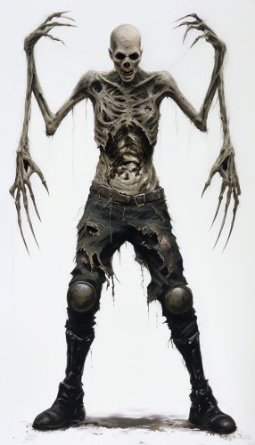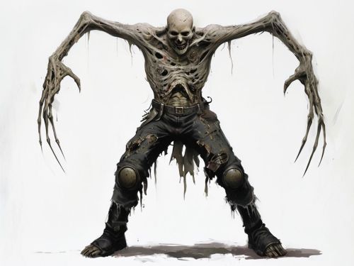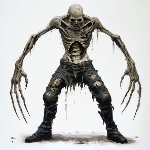 Grotesque Zombie Creature In Menacing T-Pose With Decayed Flesh