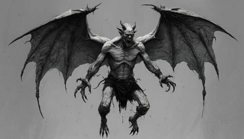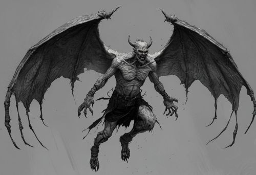 Monochromatic Illustration Of A Winged Demonic Creature
