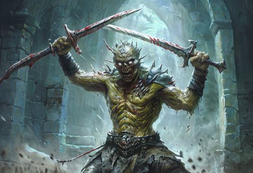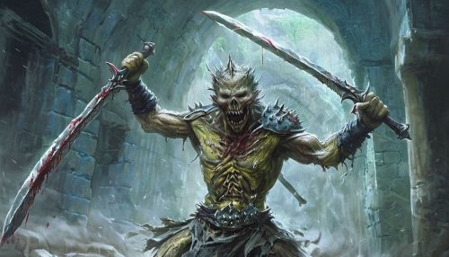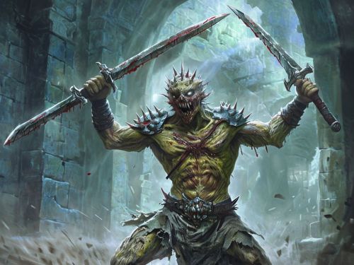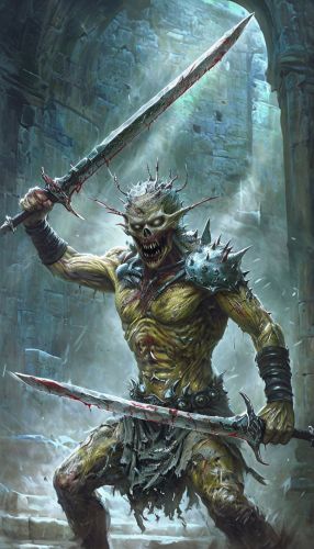 Monstrous Warrior Battle Scene In Ancient Ruins