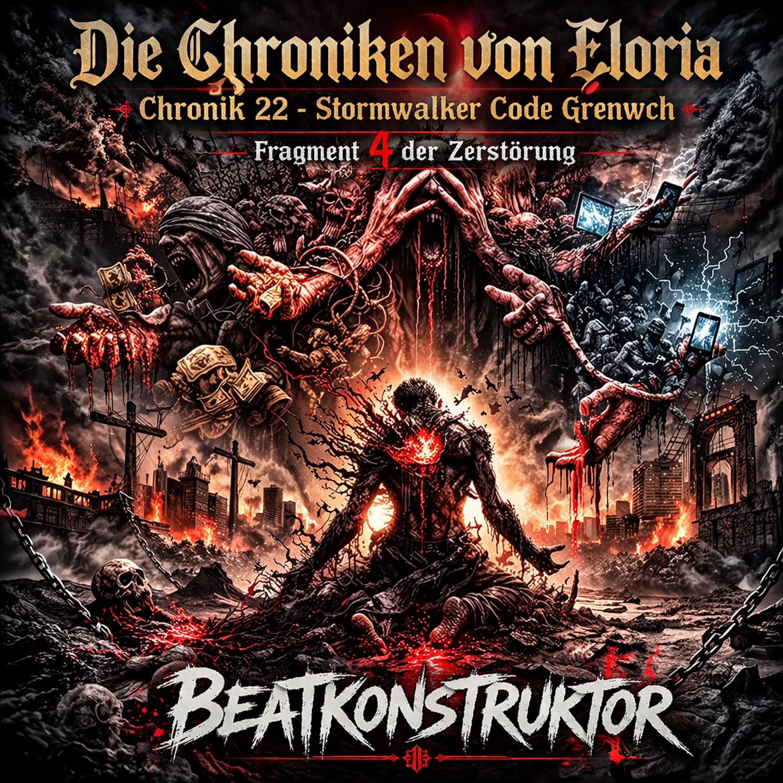 Willkommen… zurück… im Fragment der Zerstörung. Du hast gekniet im Staub der eigenen Splitter, hast deine Narben wie Götter angebetet. Dein Blut kroch still über deine Wange, ein rotes Gebet… das niemand erhört. Es haftet… es frisst sich durch dich wie kalte Erinnerung, und dennoch nennen sie dich… Seelenräuber. Du wurdest Granit… eine Fassade aus schweigendem Zorn, doch ihre Hände… haben dich von innen zertrümmert. Sie zerbrechen – nicht du. Sie verwesen in ihrem eigenen Spiegelbild. Du stehst noch… zwischen Ruinen und Nacht, während ihre Stimmen zu Staub zerfallen. Menschen… ein Chor aus ächzenden Hüllen, schreiende Mutation aus Fleisch und Gier, verklebt in Mustern aus kaltem Datenrausch. Ego… wie ein Parasit im System, das sich selbst verschlingt. Du sprichst von Technik…? Wer gab dir das Recht… ohne Seele… über Schöpfung zu urteilen? Du redest von Seele… doch was du hinterlässt, ist Verfall. Keine Verbindung… nur Missbrauch in heiligen Räumen. Eine Entweihung. Ein Schatten… der sich selbst nicht erkennt. Die Sichel des Mondes schneidet durch die Nacht, kaltes Licht auf bröckelndes Fleisch. Ich sitze am Rand der Welt… und zerfalle leise in mich selbst. Keine Tränen… nur Staub, der einst mein Name war. Mein Körper hält… doch mein Geist ist müde, getragen von einer Last ohne Form. Doch ich falle nicht – ich sinke nicht ein… Denn ihr seid die Zerstörung. Nicht ich. Fragment… Zerstörung… und ich… atme noch.